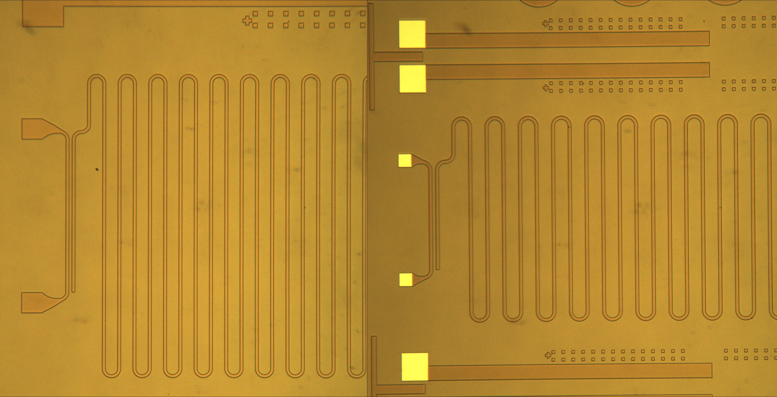 NbN resonator before (Left) and after (Right) Al contact pad deposition.